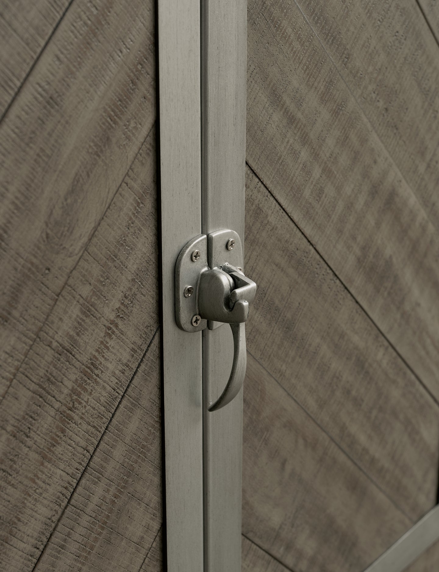 | Details | Made of pine wood, veneer and engineered wood, Weathered gray finish, 2 cabinets, each with adjustable shelf, Metal hardware | |